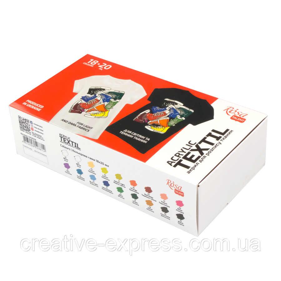 Набір акр.фарб для розпису тканин STYLE, 18кол., 20мл, ROSA TALENT