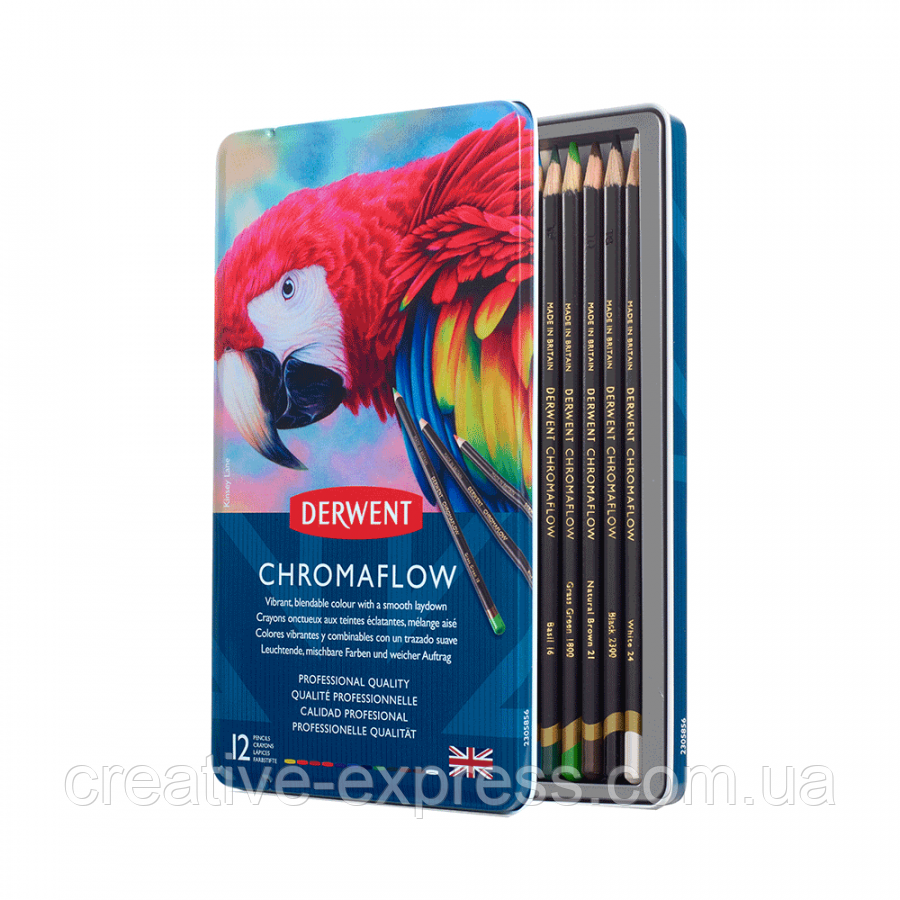 Набір кольорових олівців Chromaflow, 12шт., мет.коробка, Derwent