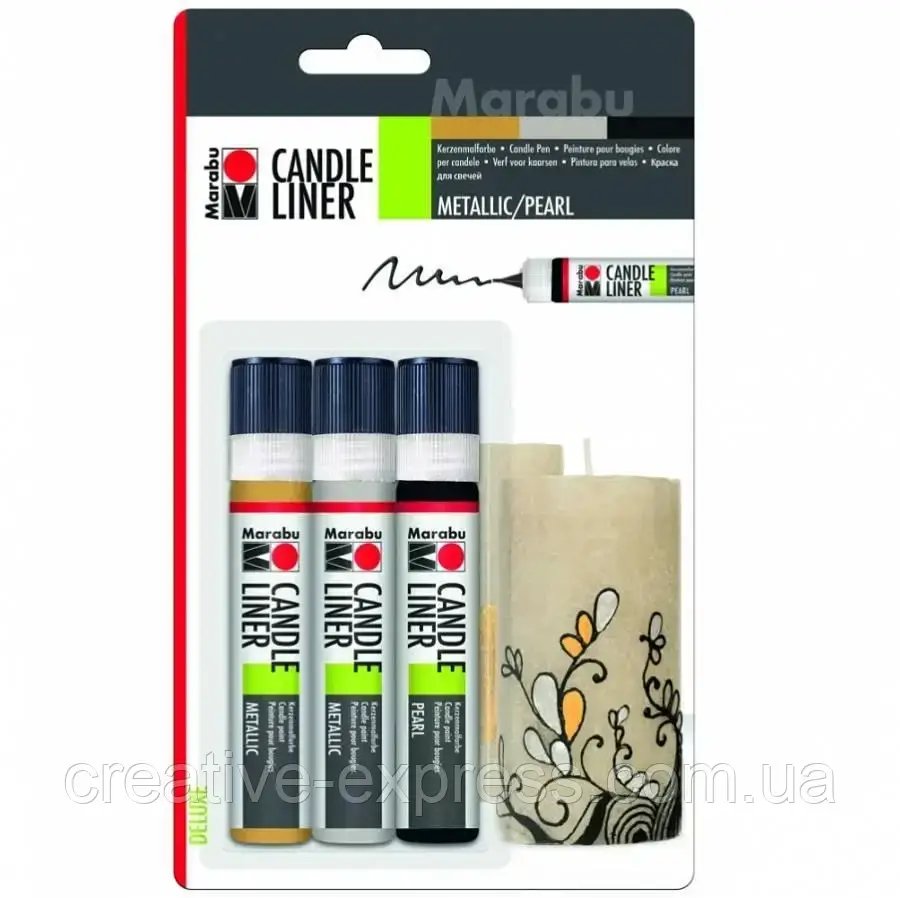 Набір контурів для розпису свічок, металіки, 3х25 мл, Marabu