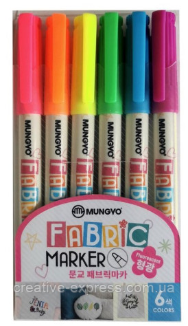 Набір маркерів для розпису світлих тканин, Флуоресцентні відтінки, 6 шт, MUNGYO