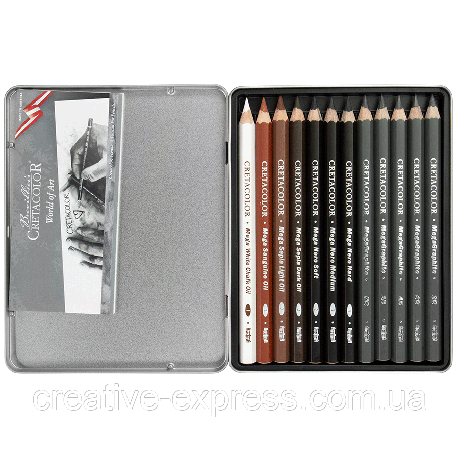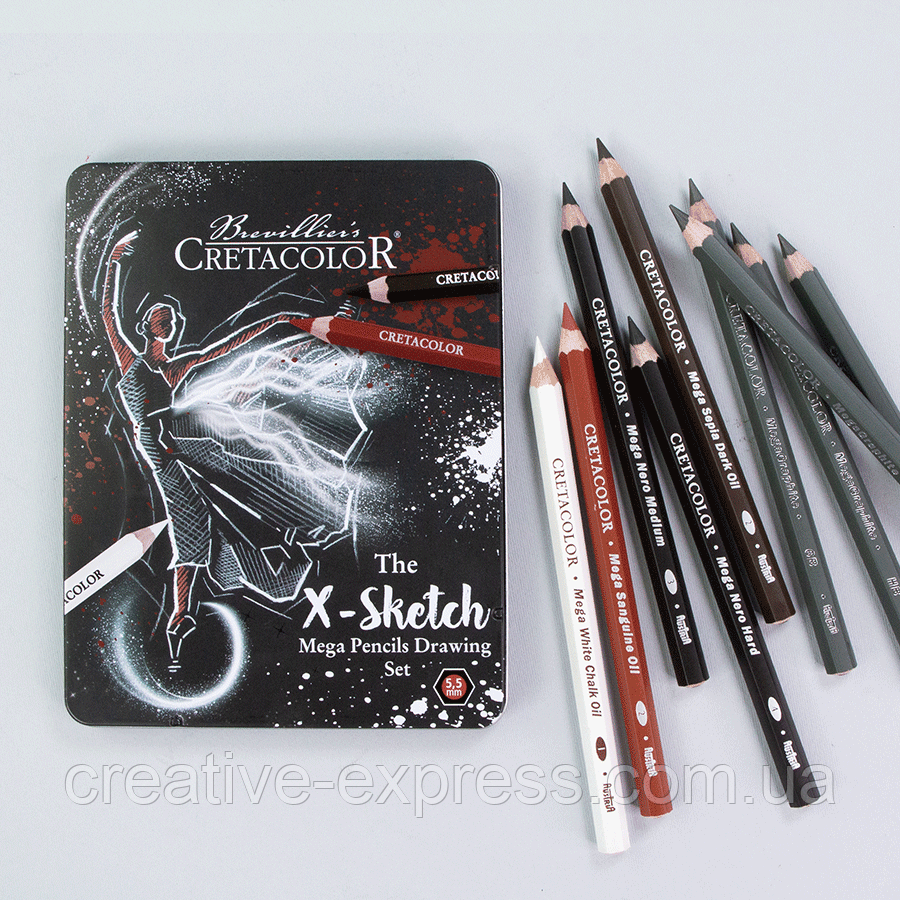 Набір олівців для рисунку X-SKETCH Mega Sketching, 12 шт., мет. коробка, Cretacolor