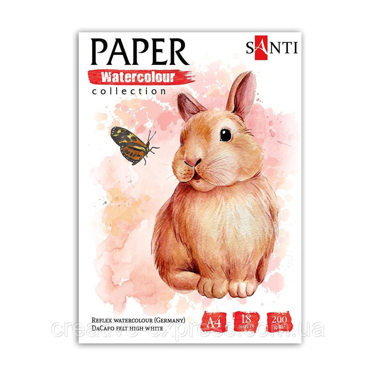 Набір паперу для акварелі SANTI “Animals”, А4, “Paper Watercolor Collection”, 18 арк, 200г/м2