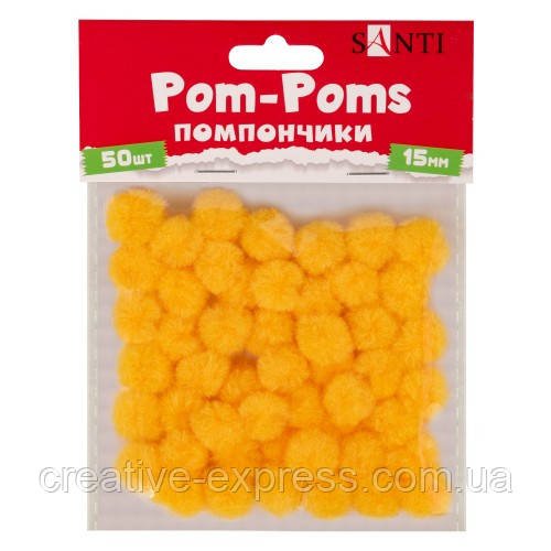 Помпони SANTI, жовті, d-15мм, 50шт./уп