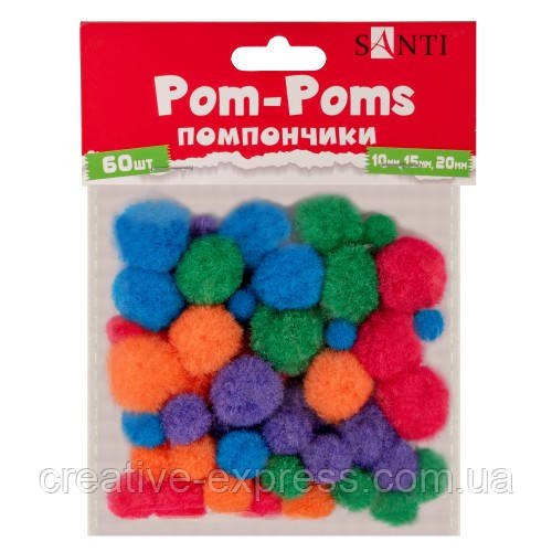Помпони SANTI, кольорові, (d-10мм,15мм,20мм), 60шт./уп