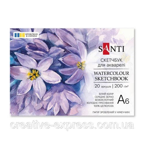 Скетчбук SANTI для акварелі, А6 20 арк., склейка, 200г/м2