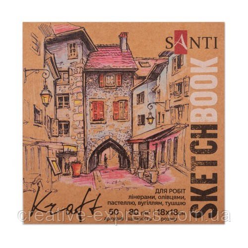 Скетчбук SANTI для графіки, з крафт папером, 18×18см, 50 арк., склейка, 80г/м2
