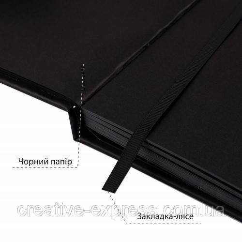 Скетчбук SANTI для графіки, з чорним папером, 15×21см, 56 арк., тверда обкладинка, PU, 145г/м2
