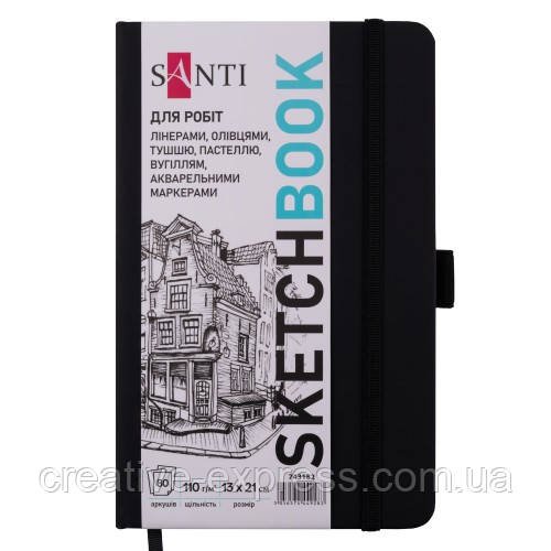 Скетчбук SANTI для графіки, 13х21см, 80 арк., тверда обкладинка PU, 110г/м2, чорний