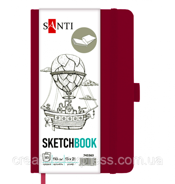 Скетчбук SANTI для графіки, 13х21см, 80 арк., тверда обкладинка PU, 110г/м2, сливовий