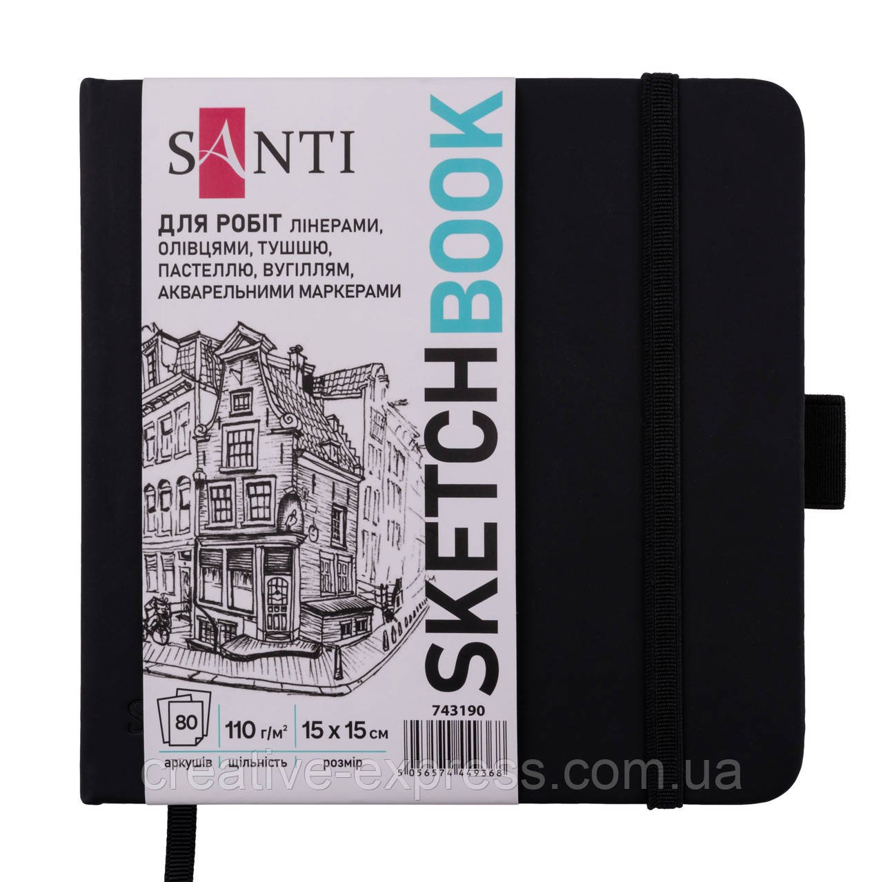 Скетчбук ТМ SANTI підходить для роботи лінерами, олівцями, тушшю, пастеллю, вугіллям, акварельними маркерами. Ідеально підходить для скетчингу, каліграфії, архітектурних ескізів та інших видів творчості.