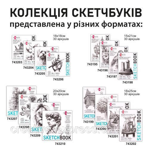 Скетчбук SANTI для графіки, “Animals” 18х18см, 30 арк., склейка, 110г/м2