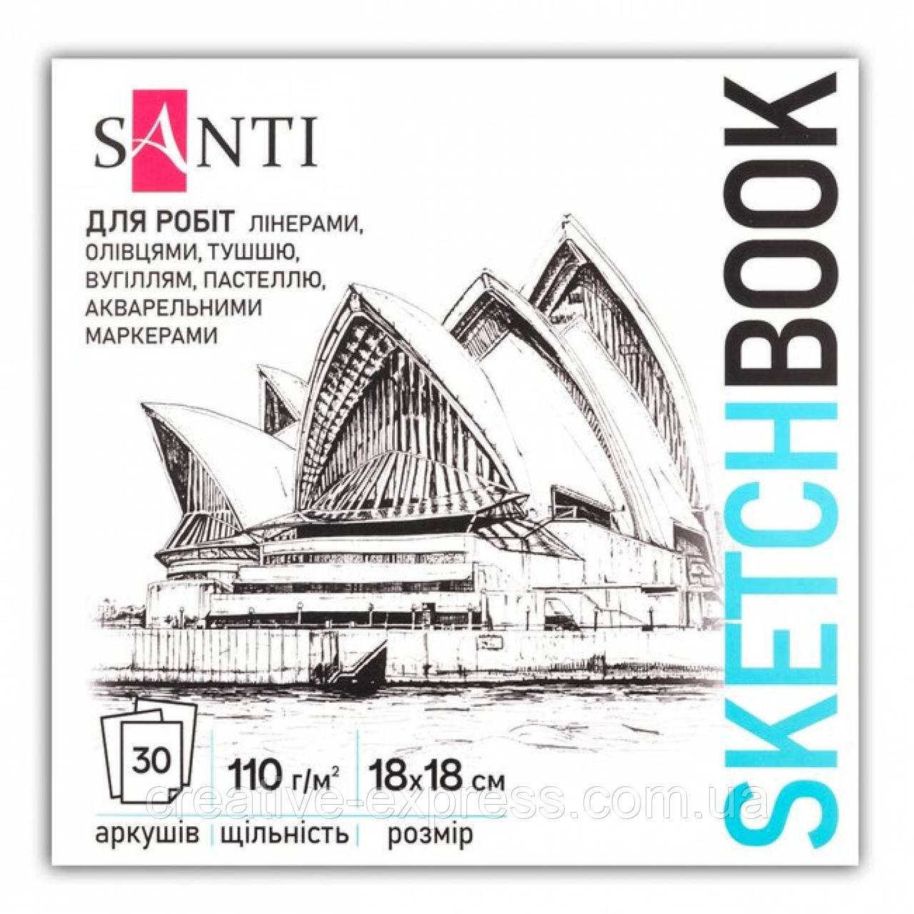 Скетчбук SANTI для графіки, “City” 18х18см, 30 арк., склейка, 110г/м2