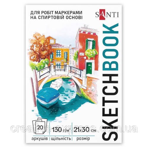 Скетчбук SANTI “Relax” А4, 20 аркушів, склейка, 130г/м2