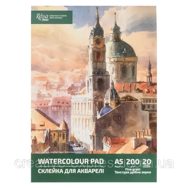 Головна Папір, альбоми, скетчбуки Альбоми для акварелі Склейка для акварелі, А5 (14,8*21 см), 200г/м2, 20л, ROSA Studio