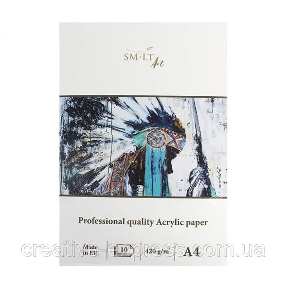 Склейка для акрилу PRO CREATE містить 10 аркушів паперу, щільністю 420г/м2. Папір білий, безкислотний.