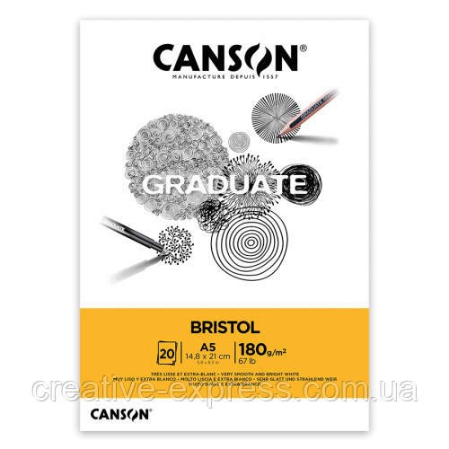 Склейка папуру для рисунку GRADUATE BRISTOL, А5 (14,8*21см), 180 г/м2, 20 л, Canson