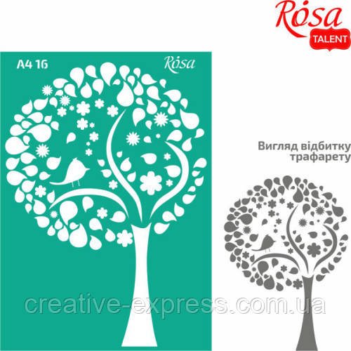 Трафарет багаторазовий самоклеючий, №16, Дерево 1, А4 (21х29,7см), ROSA TALENT