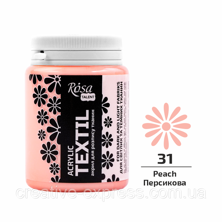 Фарба акрилова для тканин, Персикова (31), 80 мл, ROSA Talent