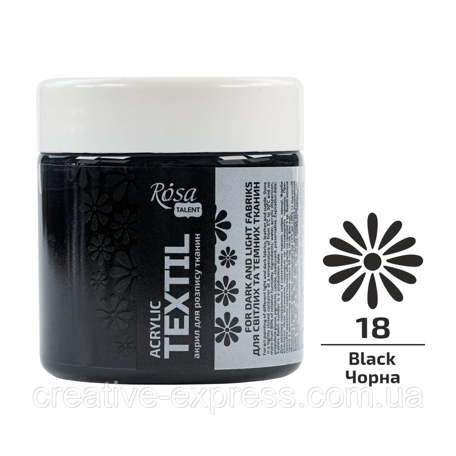 Фарба акрилова для тканин, Чорна (18), 150 мл, ROSA Talent