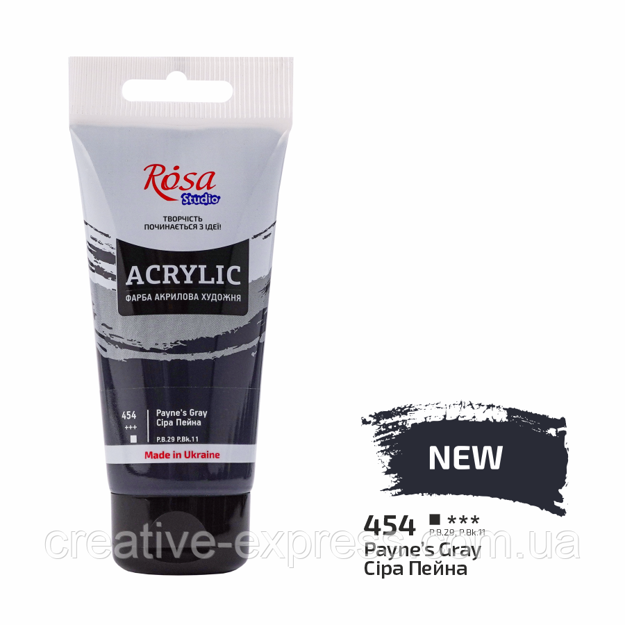Фарба акрилова, Сіра Пейна (454), 75 мл, ROSA Studio