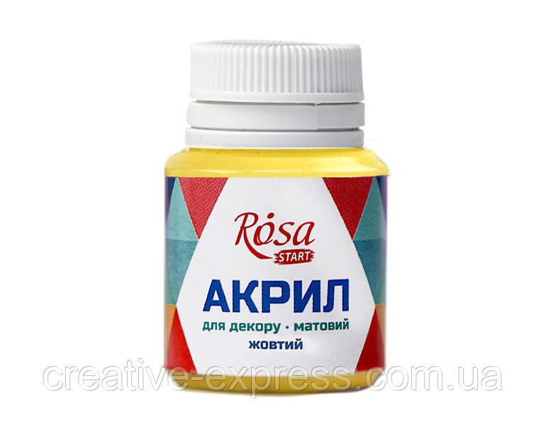 Акрил для декору, Жовтий, матовий, 20 мл, ROSA START
