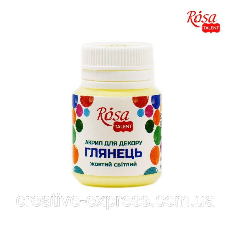 Головна Хоббі та декор Фарби для декору Акрил для декору, Жовтий світлий, глянцевий, 20 мл, ROSA Studio
