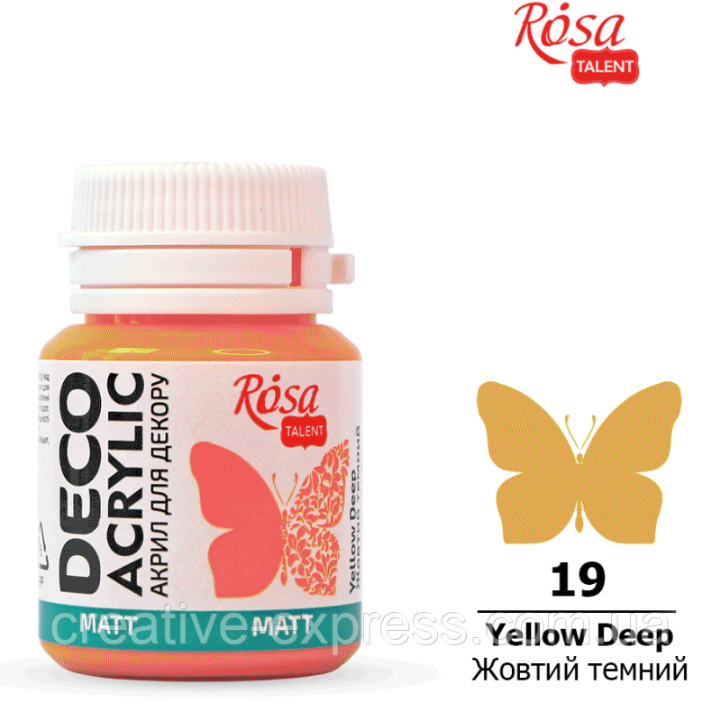 Головна Хоббі та декор Фарби для декору Акрил для декору, Жовтий темний, матовий, 20 мл, ROSA TALENT