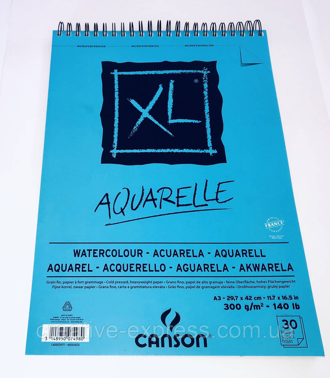 Альбом на спіралі XL® AQUARELLE A3, GRAIN FIN BLANC з папером ідеальної для акварелі щільністю 300 м / г підійде для будь-яких ваших художніх задумів.