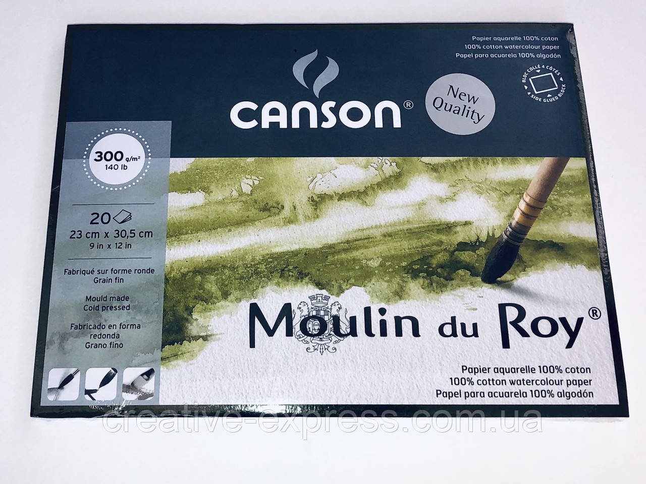 Папір для акварелі “Moulin du roy” від компанії “Canson” – це прекрасна бавовняний папір, виготовлений без застосування кислот і відбілювачів. Через використання у виробництві особливих листовідливних циліндрів, схожих зі старовинними машинами, сусідні волокна лягають не паралельно, а орієнтуються випадковим чином і щільно сплітаються в усіх напрямках, значно додаючи папері міцності, дозволяючи багаторазово наносити шари фарби і виправляти роботу. Завдяки своїй унікальній структурі папір “Moulin du roy” прекрасно вбирає вологу, а натуральний білий колір і висока щільність паперу дозволяють пігментів залишатися яскравими.