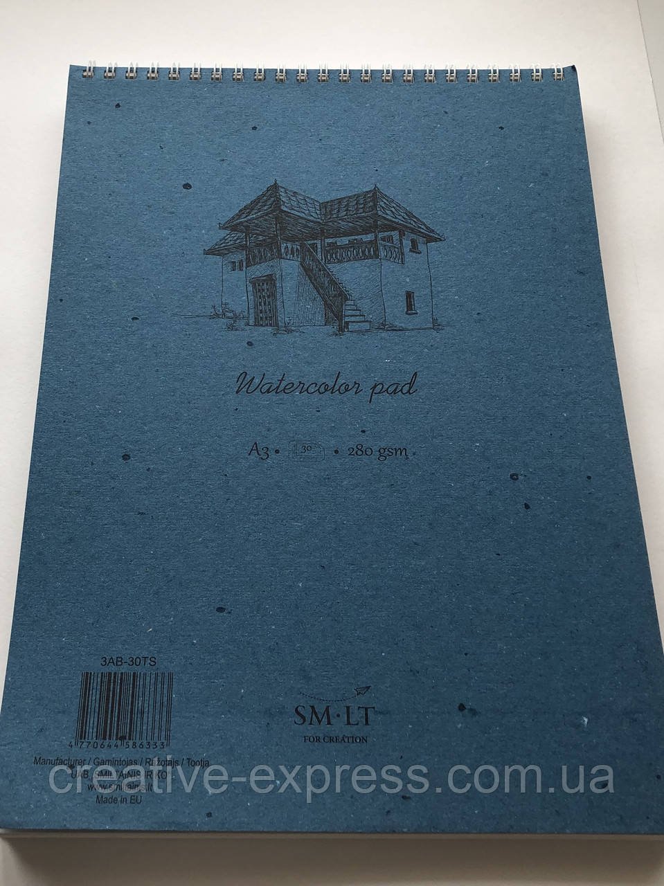 Альбом для акварелі на спіралі AUTHENTIC, A3, 280г/м2, 30л, SMILTAINIS