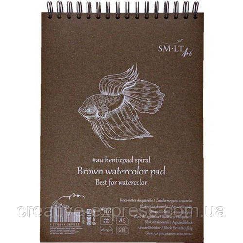 Альбом для акварелі на спіралі AUTHENTIC, A5, 280г/м2, 20л, коричневий колір, SMILTAINIS