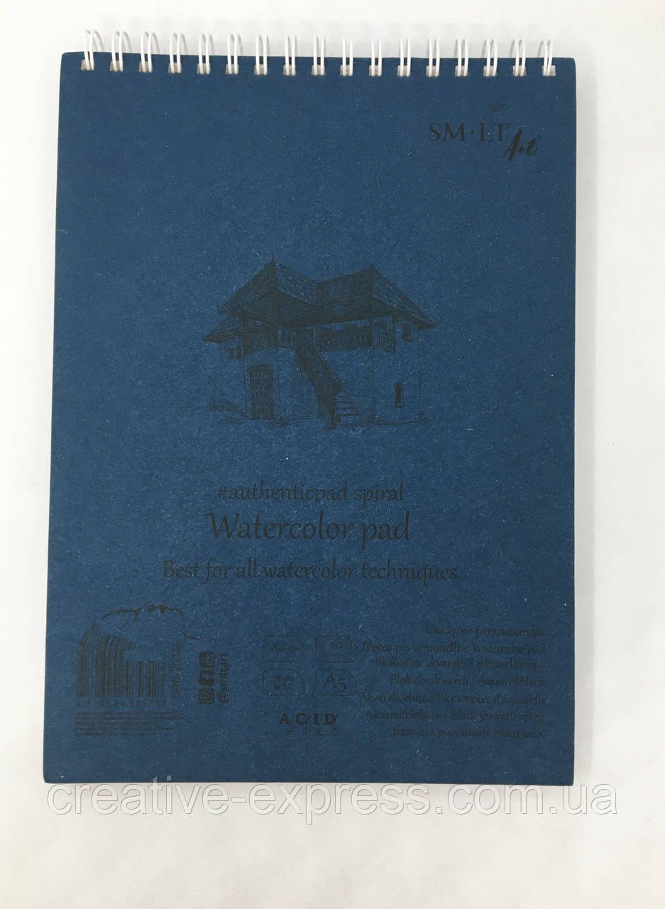 Альбом для акварелі на спіралі AUTHENTIC, A5, 280г/м2, 20л, SMILTAINIS