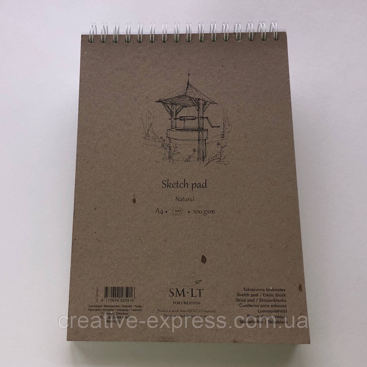 Альбом для ескізів на спіралі AUTHENTIC А4, 100г/м2, 100л, натуральний колір, SMILTAINIS