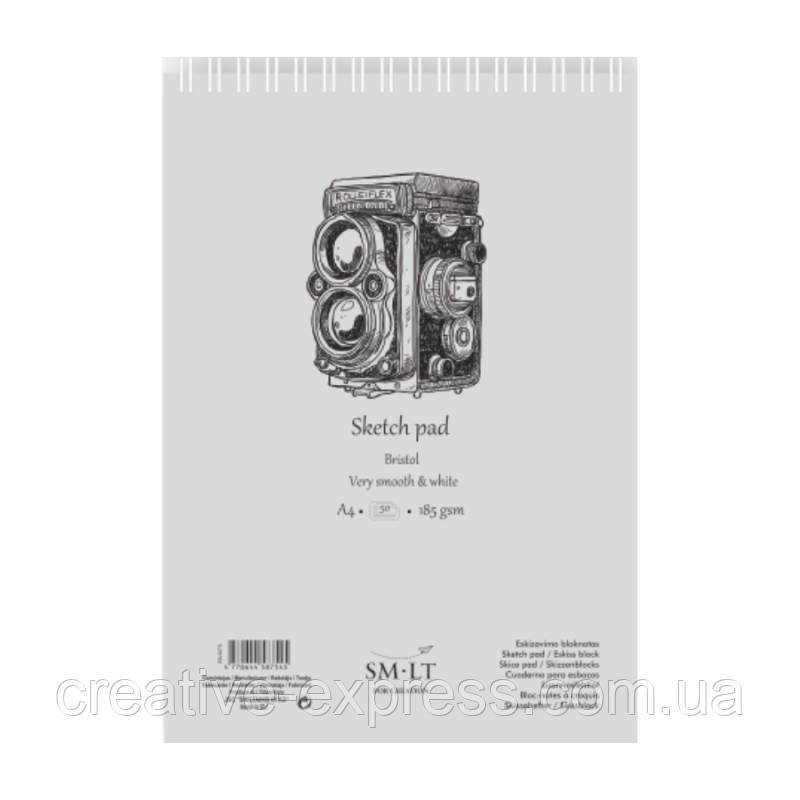 Альбом для ескізів на спіралі AUTHENTIC (Bristol) А4, 185г/м2, 50л, білий та гладкий папір, SMILTAIN