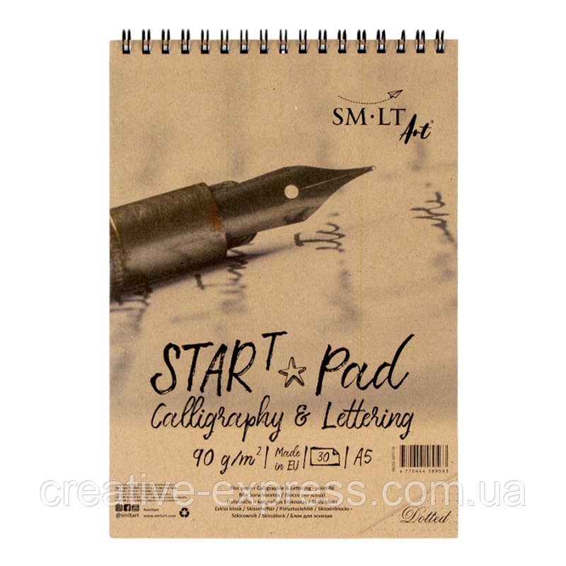 Безкислотний, білий, прозорий папір із щільністю 90 г/м2 для каліграфії та леттирингу. Підходить для робіт олівцем, чорнилом, вугіллям, пастеллю та тушшю. Усі сторінки містять пунктирну сітку.