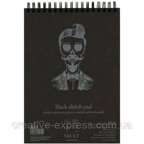 Альбом для рисунку на спіралі AUTHENTIC (black) А5, 165г/м2, 20л, чорний папір, SMILTAINIS