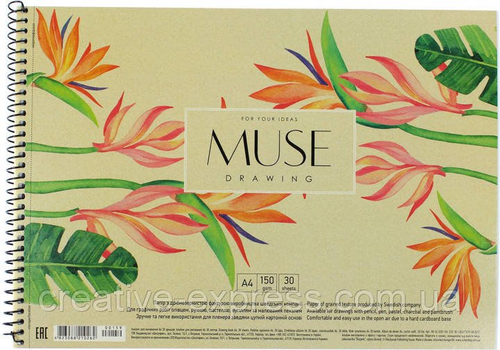 Альбом для малювання,крафт обгортка квіти А4, MUSE 030-159