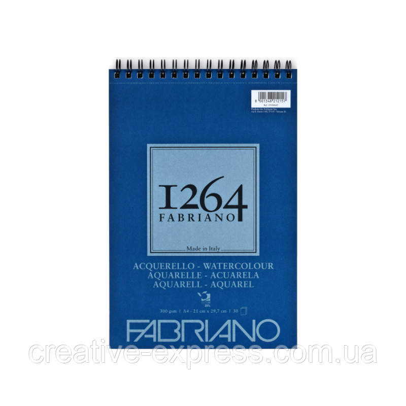 Альбом на спіралі для акварелі 1264 А4, 300г/м2, 30л, СР, 25% бавовни, Fabriano