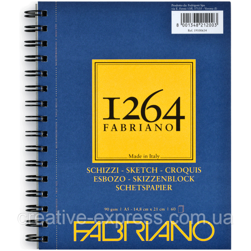 Альбом на спіралі для рисунку та ескізів 1264 А5, 90г/м2, 60л, слонова кістка, Fabriano