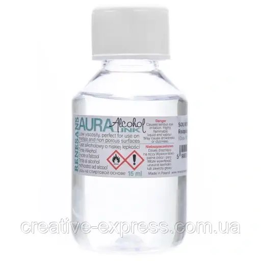 Aura Cleaner Renesans — це розчинник для спиртових чорнил AURA ALCOHOL INK від Renesans. Дозволяє відмити тушки з різних поверхонь, прибрати небажані наслідки від роботи та очистити інструменти – спринклери, пульверизатори та ін.