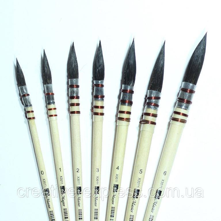 Кисті серії Х3011, так звані «французькі» акварельні круглі кисті з ворсу білки. Такі кисті збирають вручну, що гарантує відмінну якість форми пучка. Волос білки – один з кращих матеріалів для виготовлення художніх кистей. Він еластичний, м’який і прекрасно зберігає форму пучка.