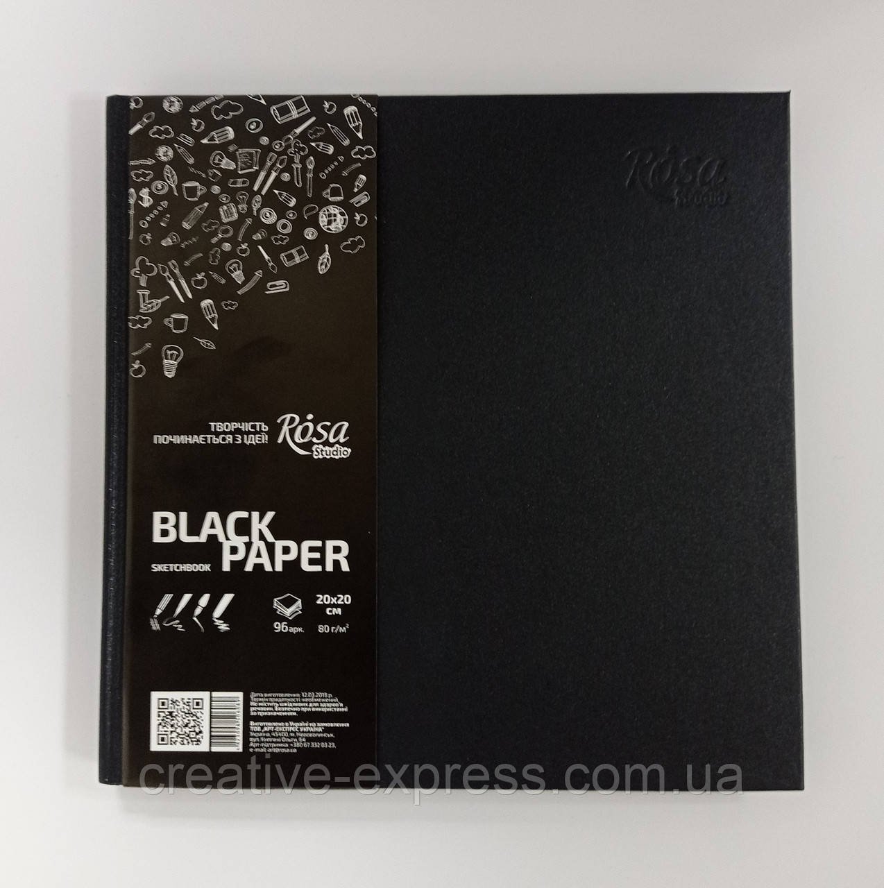 Блокнот 20х20см, чорний папір, 80г/м, 96л., ROSA Studio
