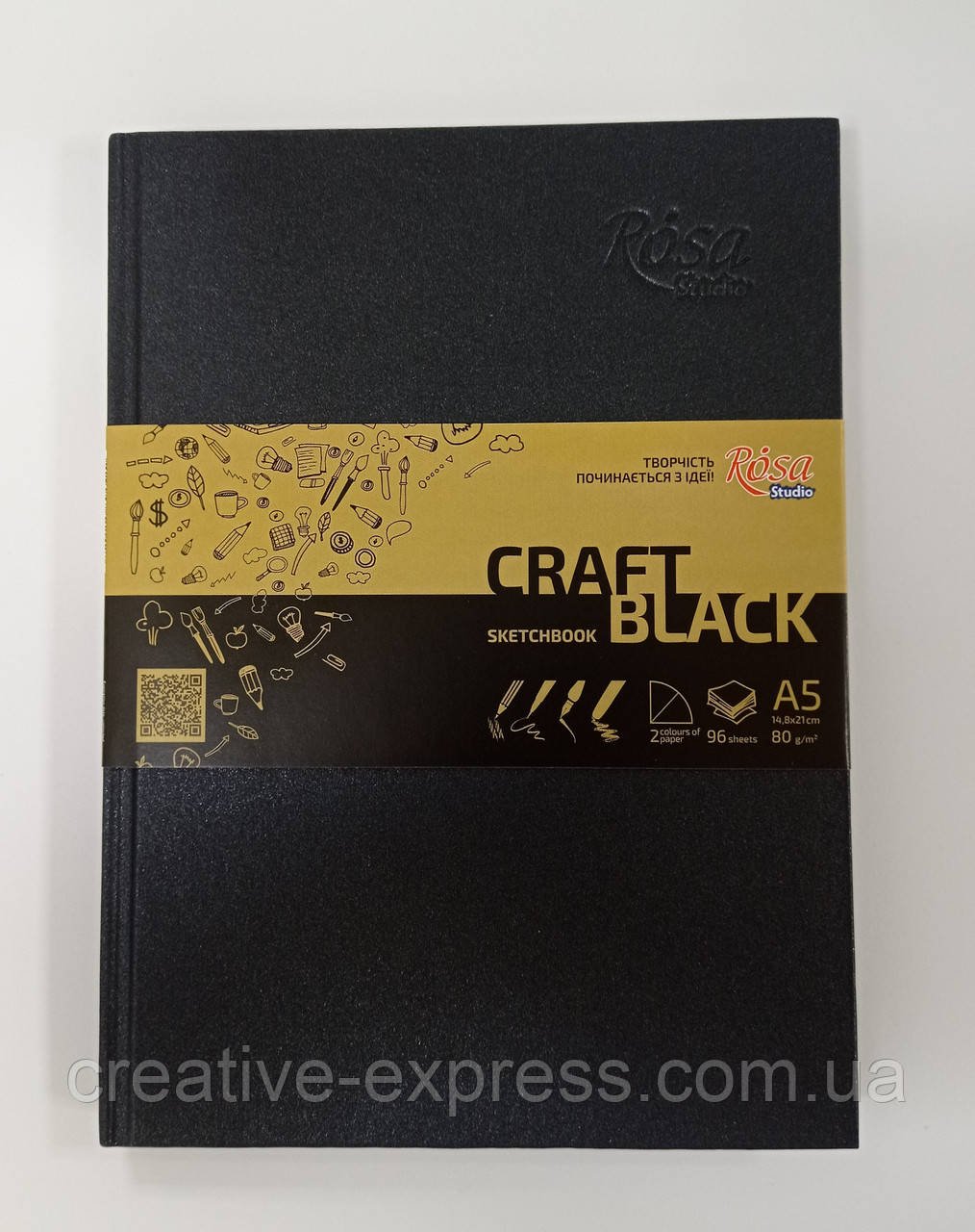 Блокнот A5 (14,8*21см), чорний та крафт папір, 80г/м, 96л., ROSA Studio
