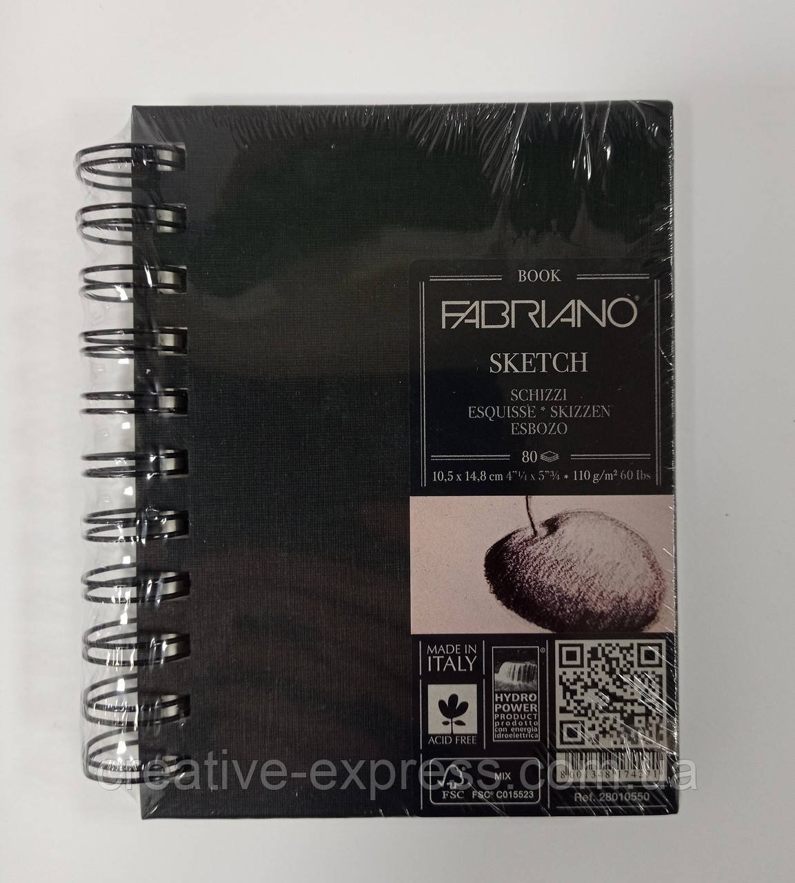 Блокнот для ескізів на спіралі A6 (10,5х14,8см), 110г/м2, 80л., Fabriano