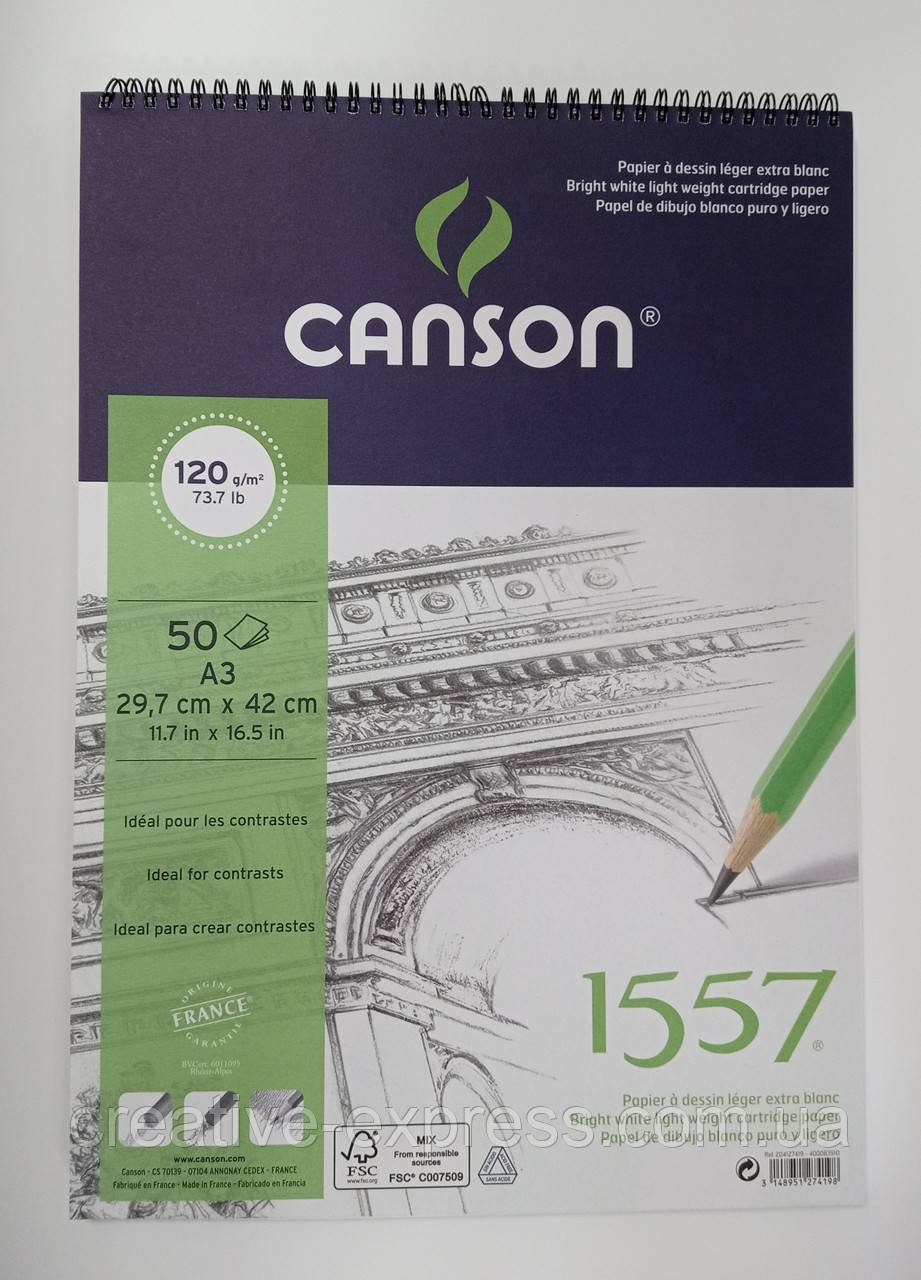 Блокнот на спіралі 1557 ® 50арк, A2 (29.7*42cm ), 120гр Canson