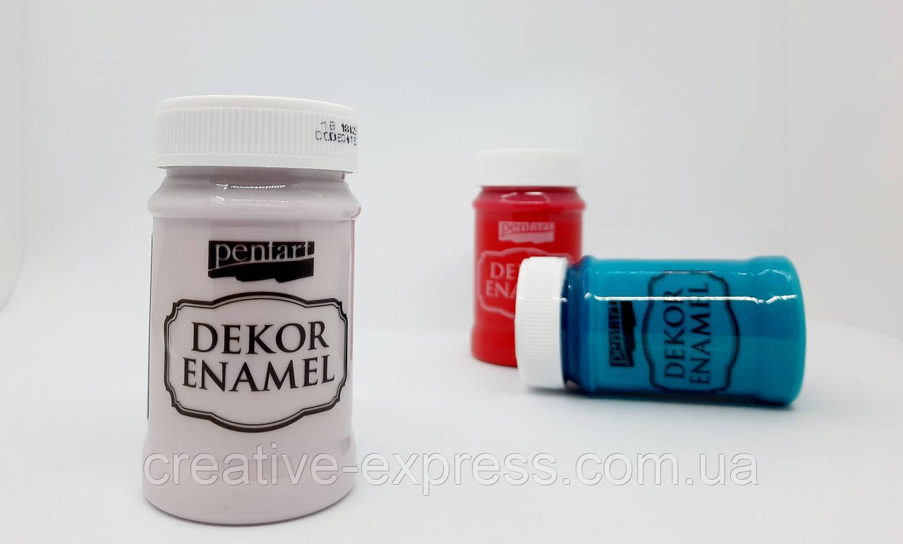 Фарба акрилова «Dekor Enamel» – глянцева акрилова фарба на водній основі, яка створює ефект глянцю на будь-яких твердих поверхнях, при цьому імітуючи ефект порцеляни.