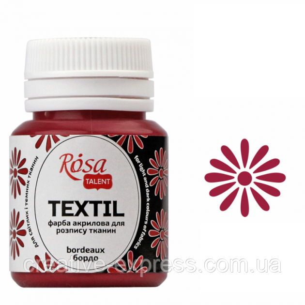 Головна Хоббі та декор Розпис по тканині та шовку Фарба акрилова для тканин, Бордо (30), 20 мл, ROSA TALENT