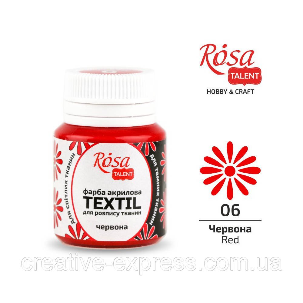 Фарба акрилова для тканин, Червона (06), 20мл, ROSA TALENT