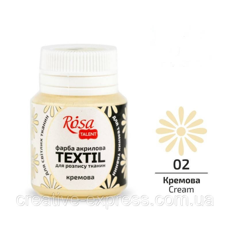 Фарба акрилова для тканин, Кремова (02), 20 мл, ROSA TALENT