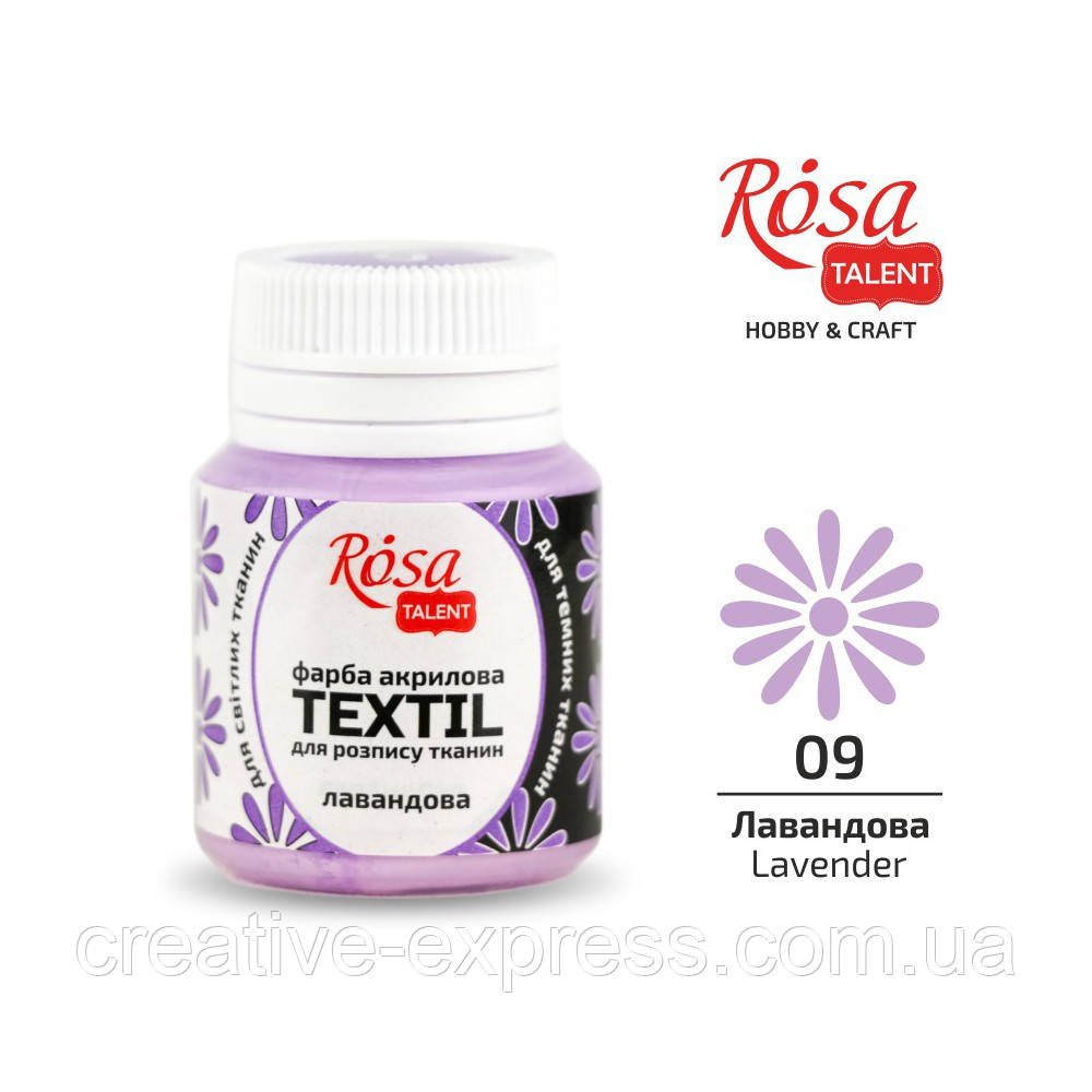 Фарба акрилова для тканин, Лавандова (09), 20 мл, ROSA TALENT